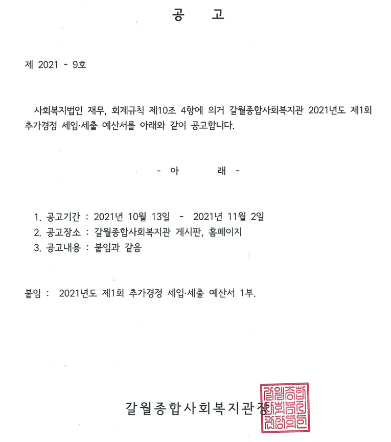 2021년 제1차 추가경정예산서 게시