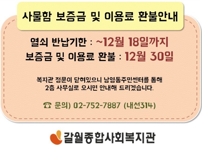 사물함 보증금 및 이용료 환불시 12월 18일까지