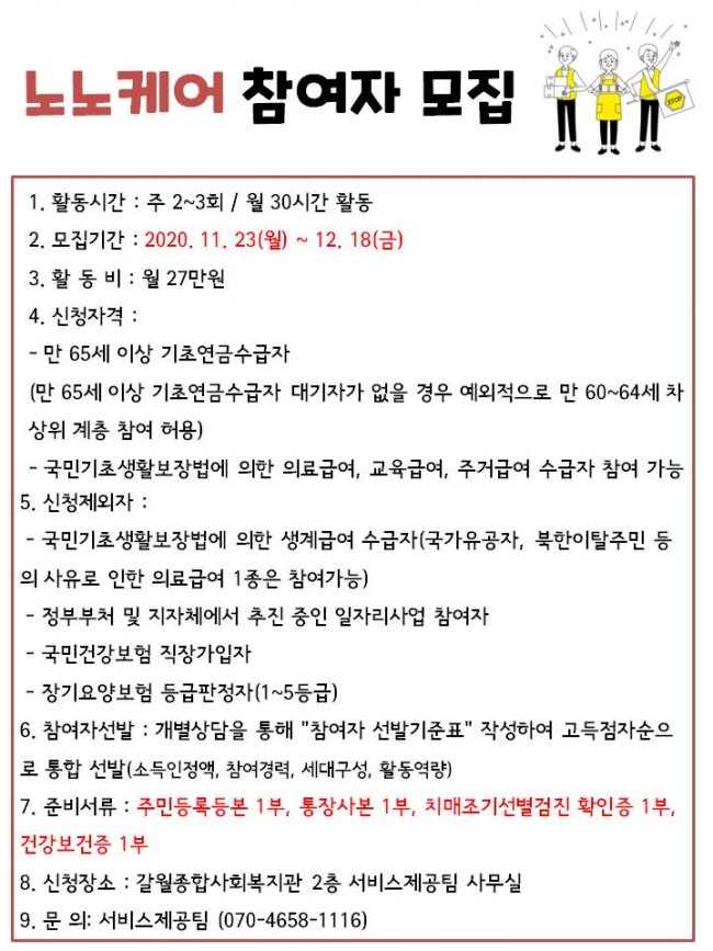 2021년 노인일자리 및 사회활동 지원사업 참여자 모집(노노케어)