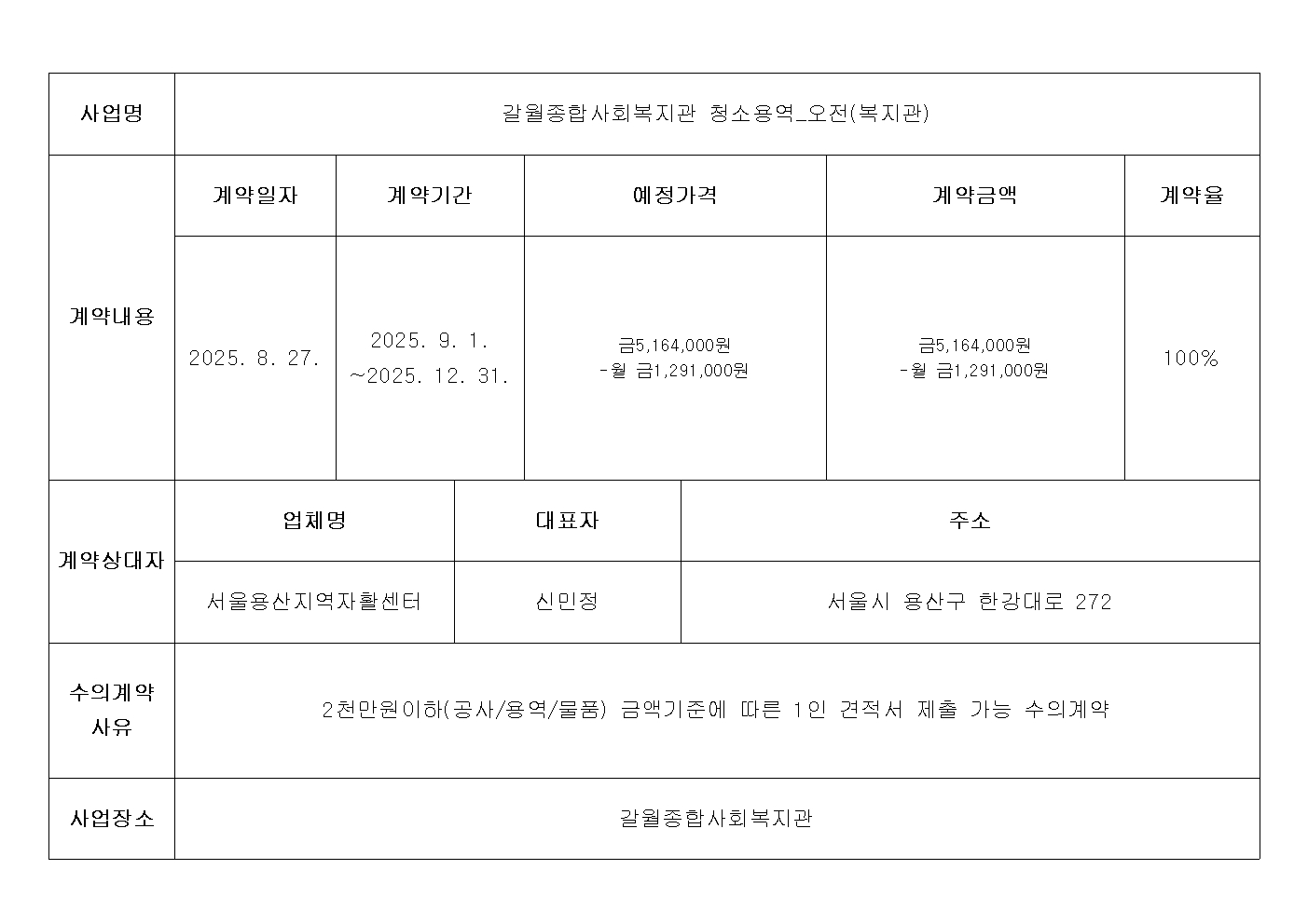 수의계약 내역 공개 내역서(2025년 8월)