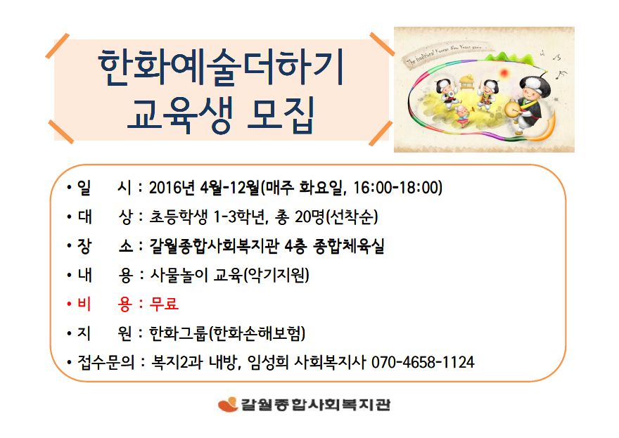 2016년 한화예술더하기 교육생 모집