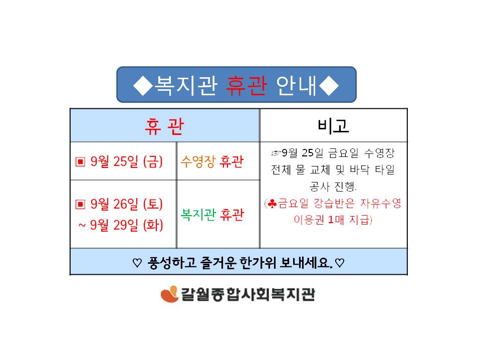 복지관 휴관 안내