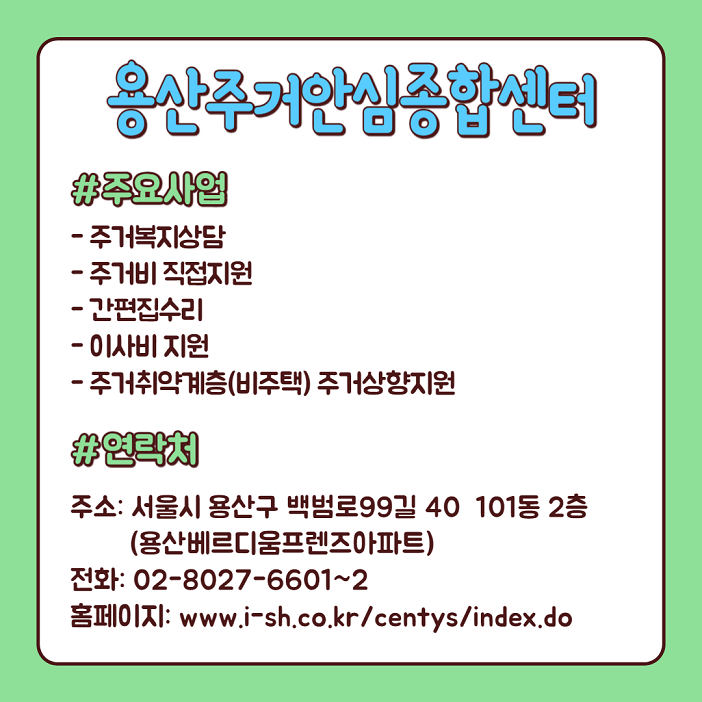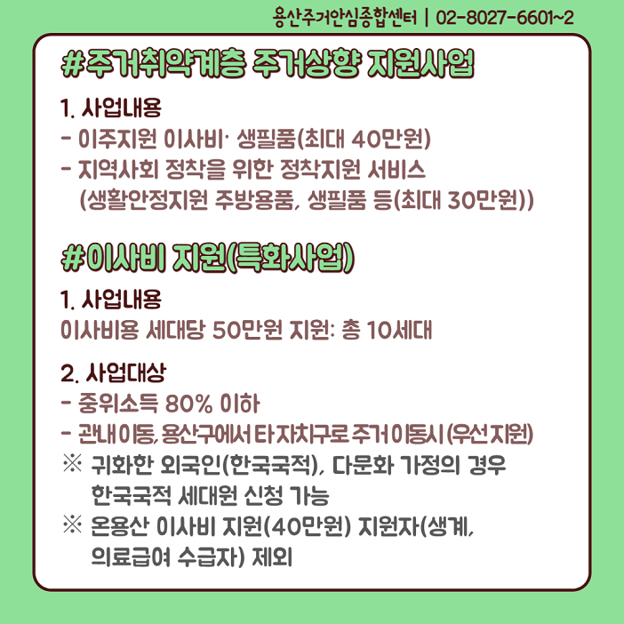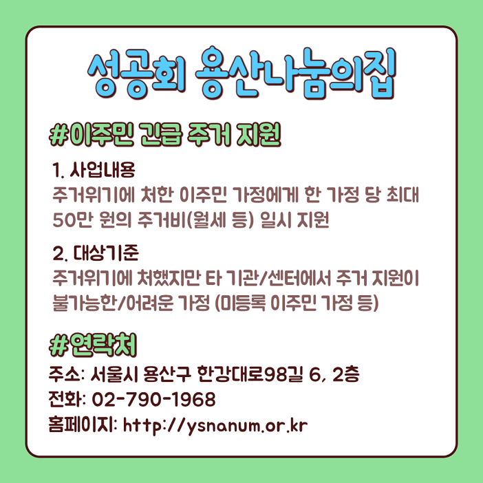 용산구이주배경지원기관협의체에서는 2개월에 한번씩 카드뉴스를 제작하고 있습니다.