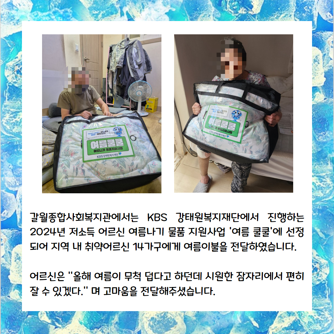 <서비스제공과> KBS 강태원복지재단 저소득 어르신 여름나기 물품 지원사업 '여름 쿨쿨' 선정