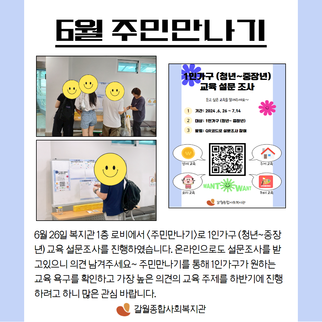 지역주민을 모시는 공동체로써 삶의질 향상에 최선을 다하겠습니다.