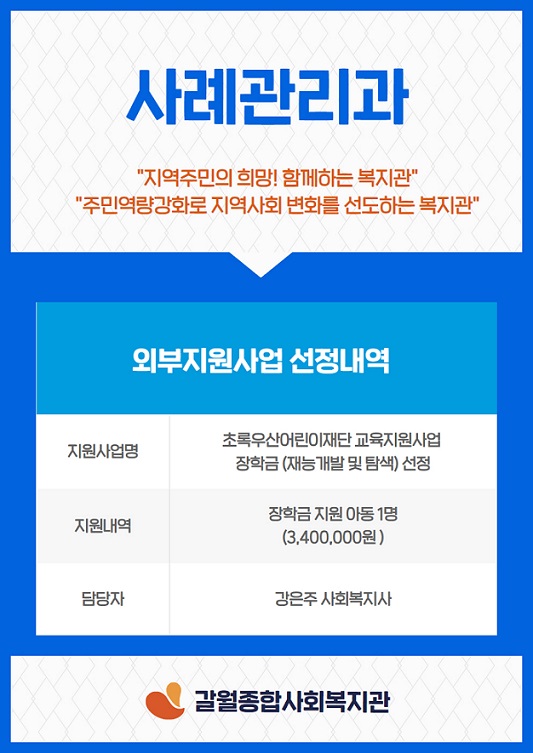 <사례관리과> 초록우산 어린이재단 "교육지원 장학금" 선정