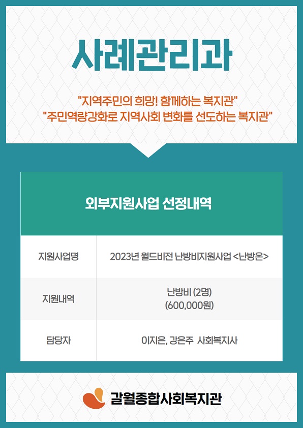 <사례관리과> 2023년 월드비전 난방비지원사업 "난방온" 선정