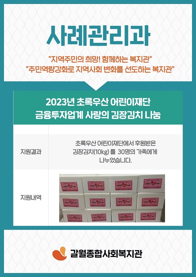 <사례관리과> 초록우산 어린이재단 "사랑의 김장김치 나눔"