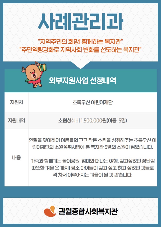 <사례관리과> 초록우산 어린이재단 "소원성취사업" 선정