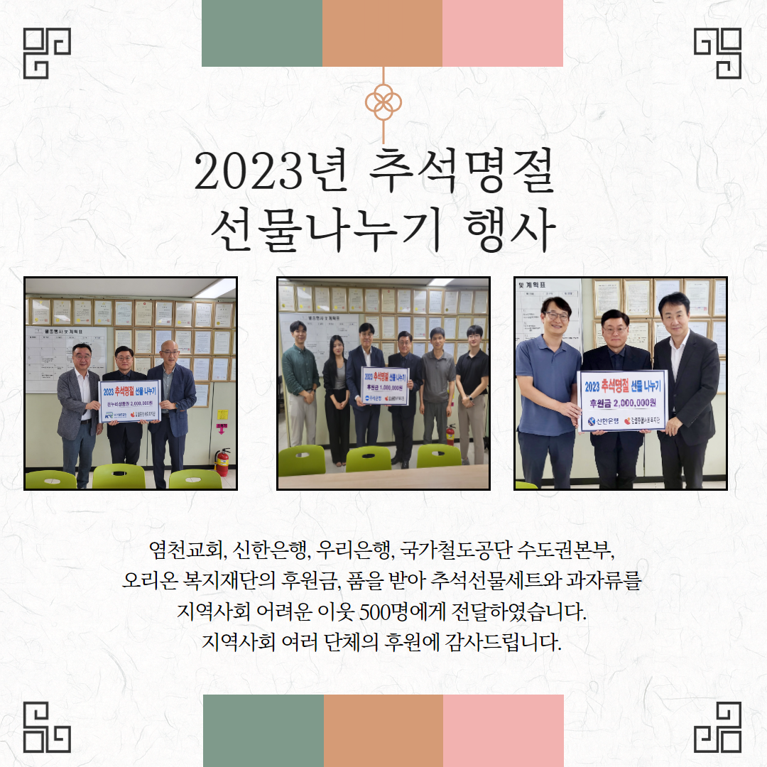 지역주민을 모시는 공동체로써 삶의질 향상에 최선을 다하겠습니다.