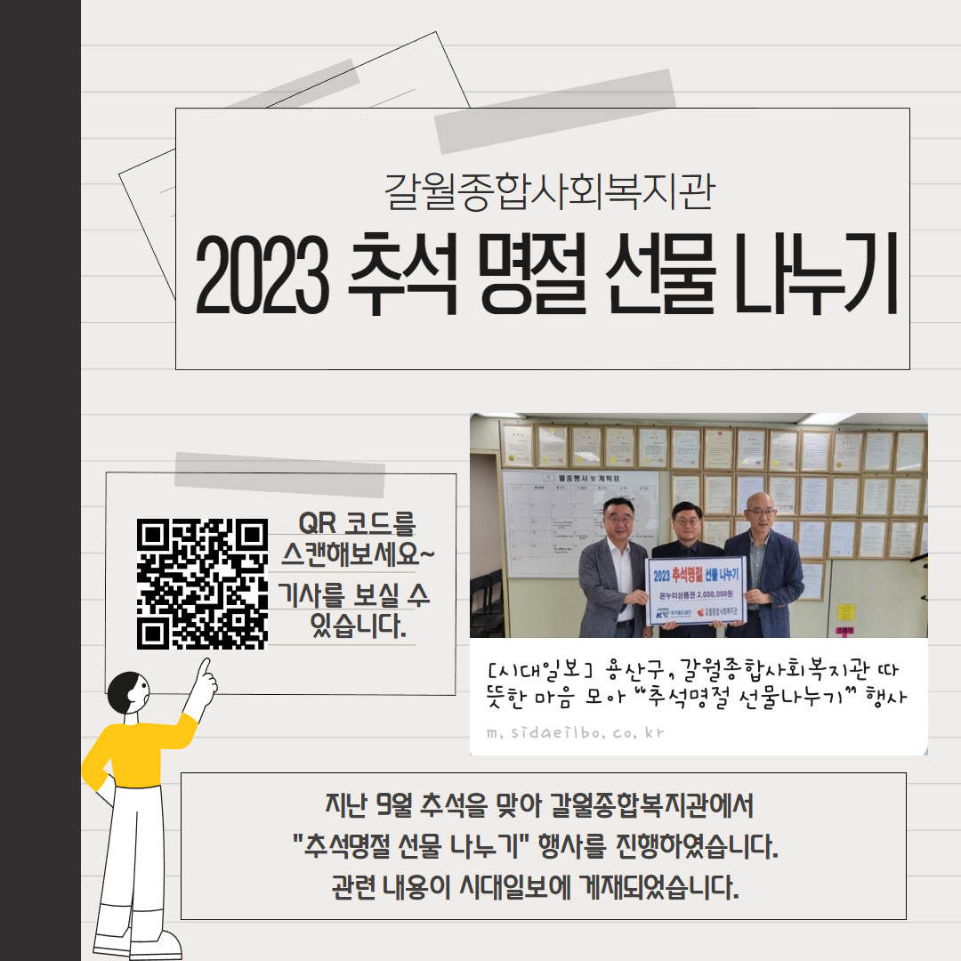 갈월종합사회복지관 추석명절 행사 "시대일보, 신용산 신문 게재"