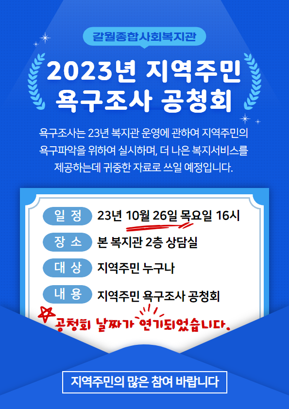 지역주민 욕구조사 공청회 날짜 연기