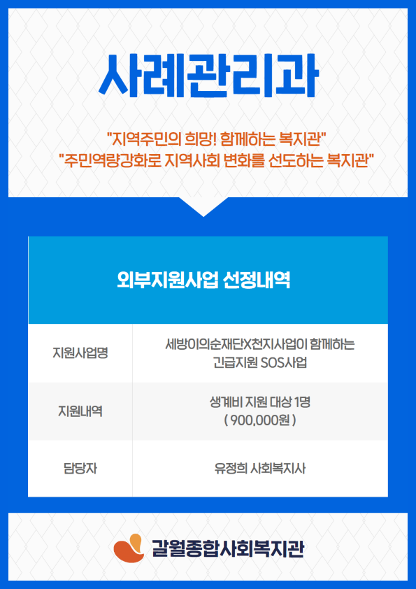 <사례관리과> 세방이의순재단 긴급지원SOS사업 선정
