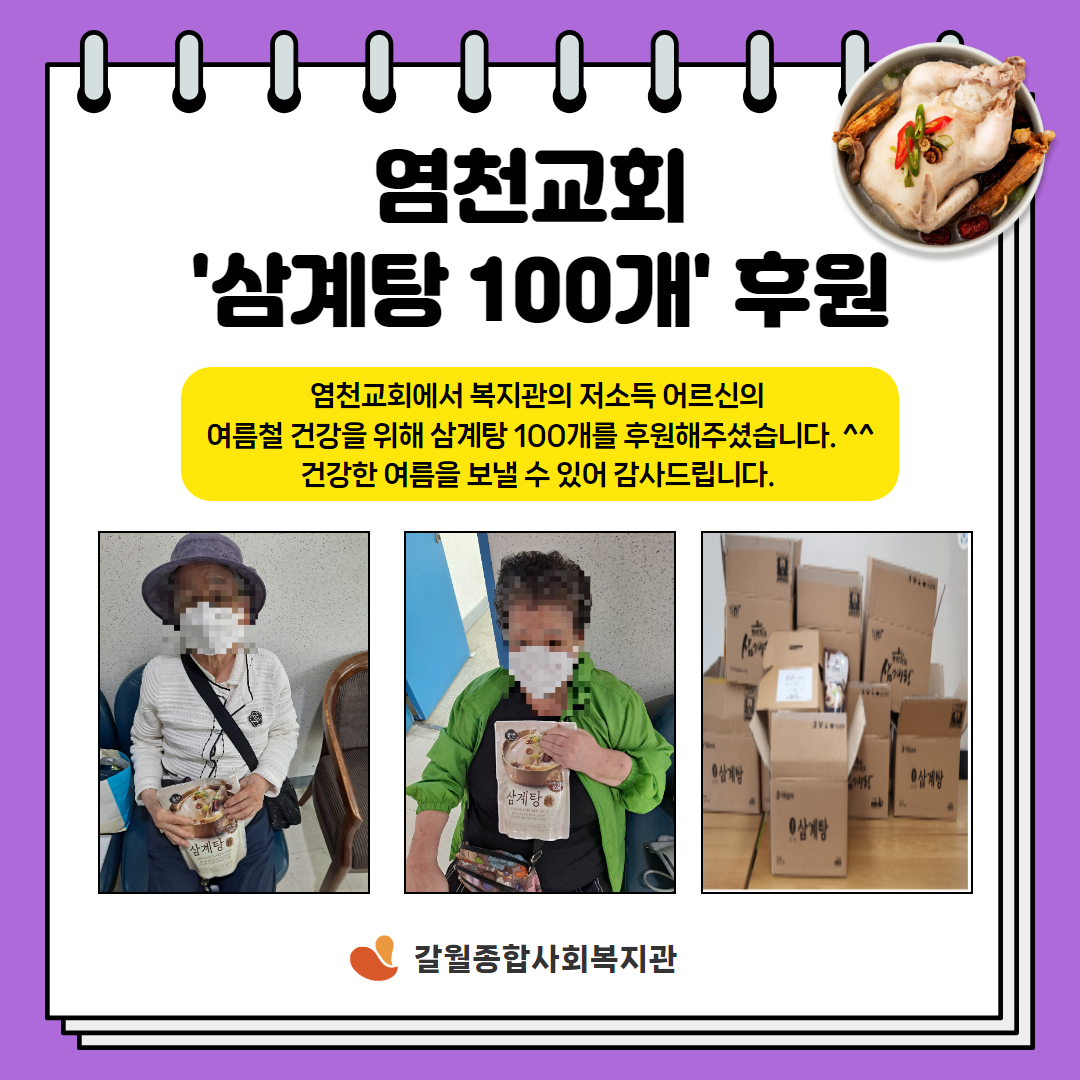 <지역조직과> 염천교회 삼계탕 100개 후원 나눔
