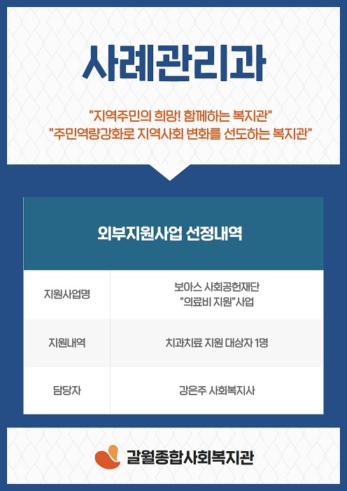 <사례관리과> 보아스사회공헌재단 "의료비(치과치료) 지원사업" 선정