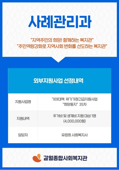 <사례관리과> 기아대책 위기가정긴급지원사업 "희망둥지" 35차 선정