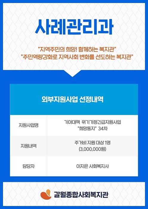 <사례관리과> 기아대책 위기가정긴급지원사업 "희망둥지" 34차 선정