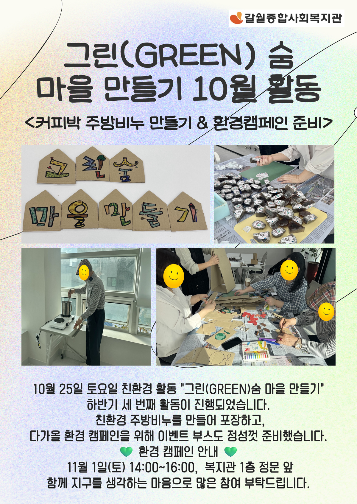 <복지3과> 친환경 활동 "그린(Green)숨 마을 만들기" 10월 활동 진행
