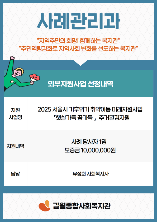 <사례관리과> 2025 서울시 기후위기 취약아동 미래지원사업 선정