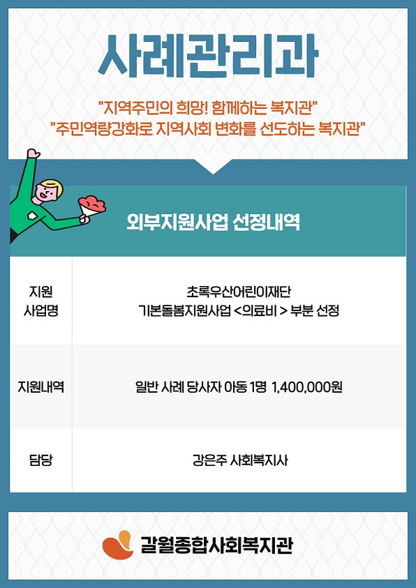 <사례관리과> 초록우산 어린이재단 "기본돌봄지원사업 의료비 부분" 선정