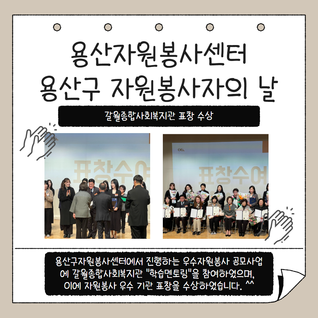 <지역조직과> 용산구 자원봉사자의날 우수기관 표창 수상