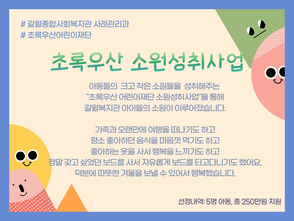 <사례관리과> "초록우산어린이재단 소원성취사업" 선정