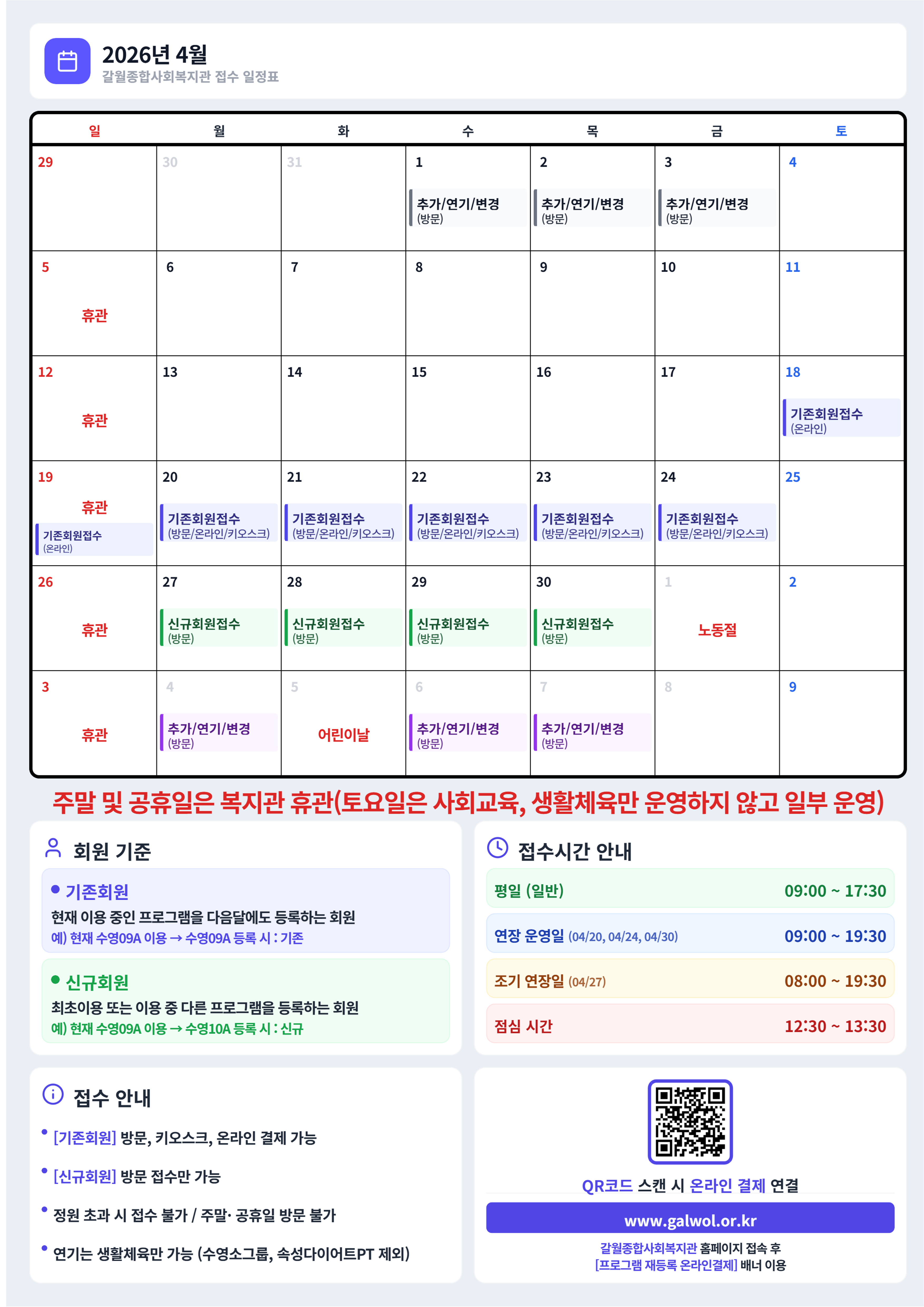 프로그램등록 일정 및 휴관(2026년 4월 달력)
