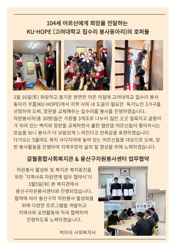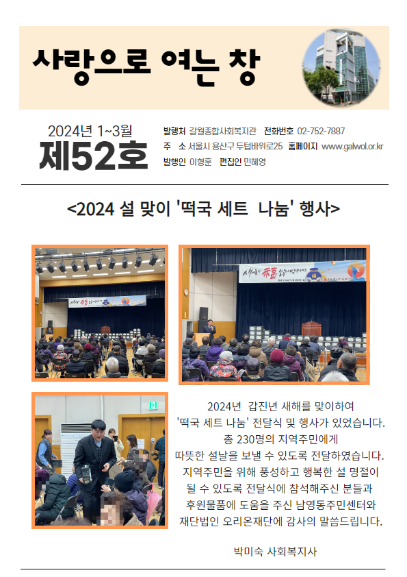 지역주민을 모시는 공동체로써 삶의질 향상에 최선을 다하겠습니다.