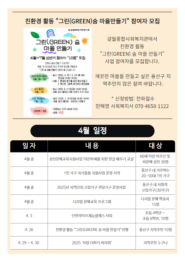 지역주민을 모시는 공동체로써 삶의질 향상에 최선을 다하겠습니다.