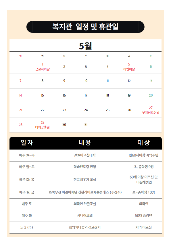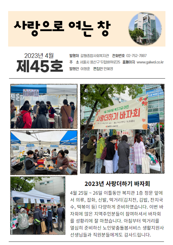 지역주민을 모시는 공동체로써 삶의질 향상에 최선을 다하겠습니다.