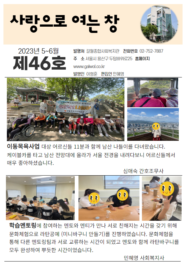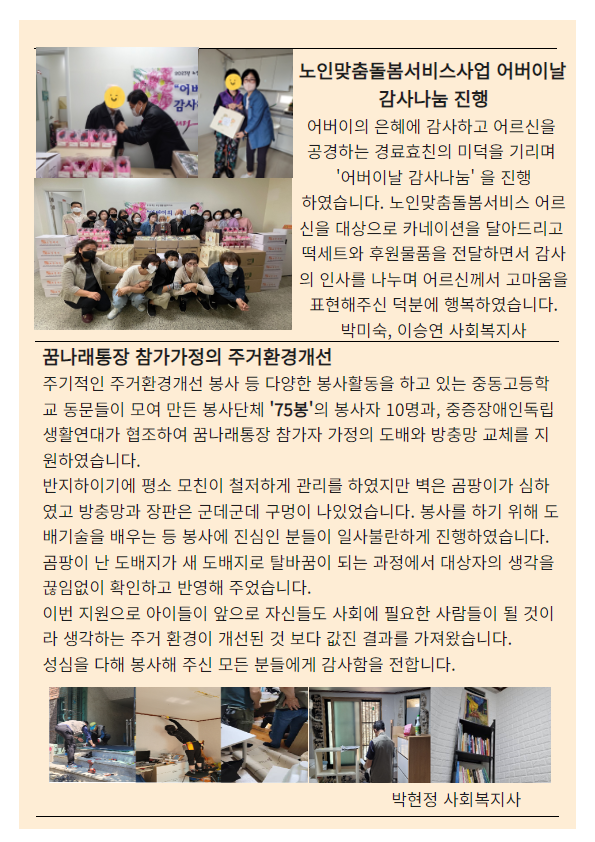 지역주민을 모시는 공동체로써 삶의질 향상에 최선을 다하겠습니다.