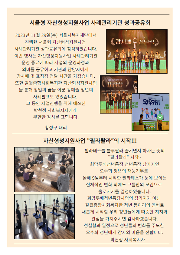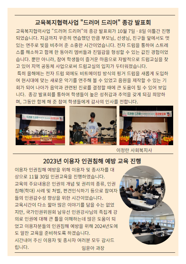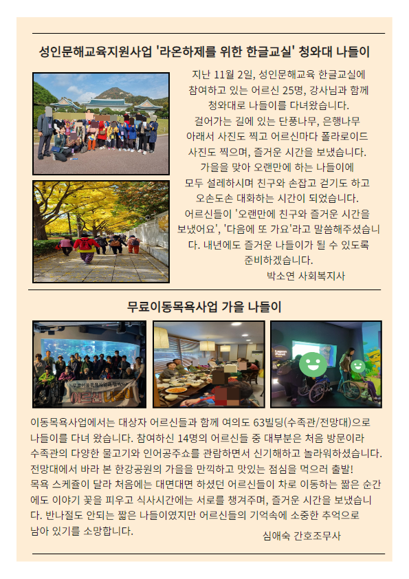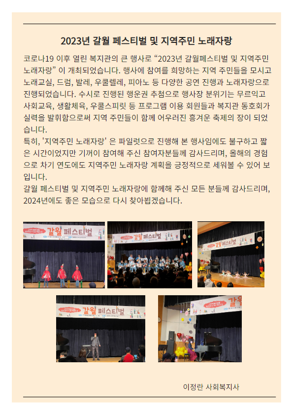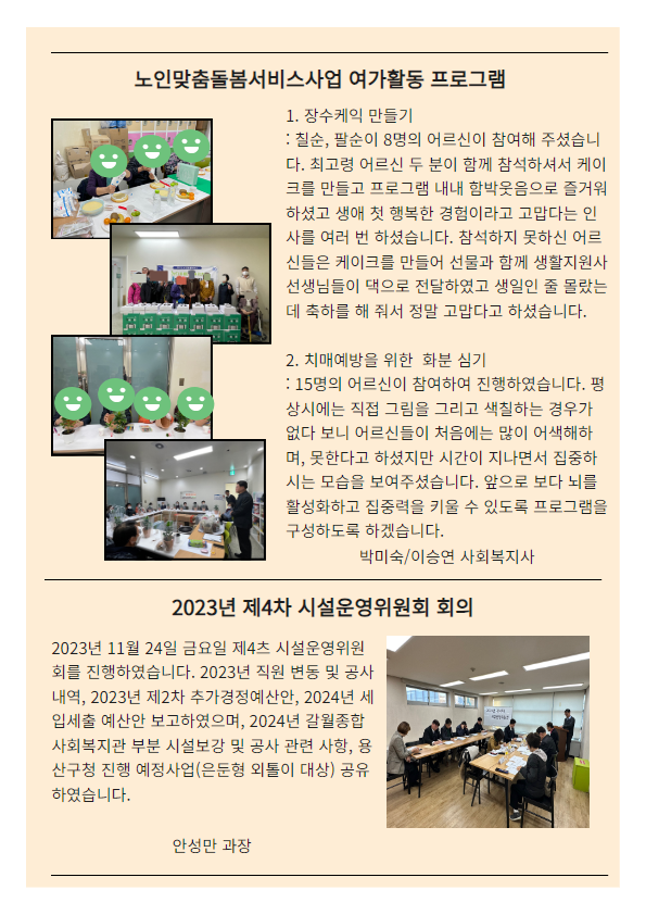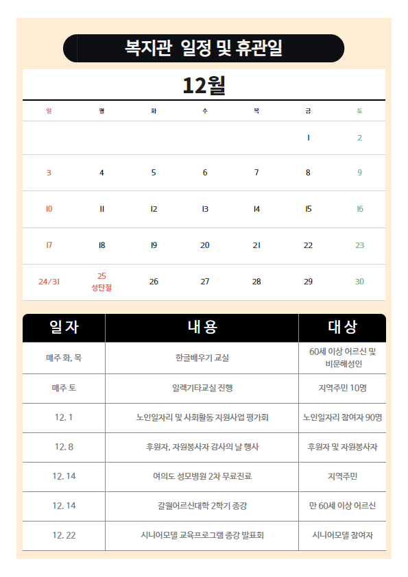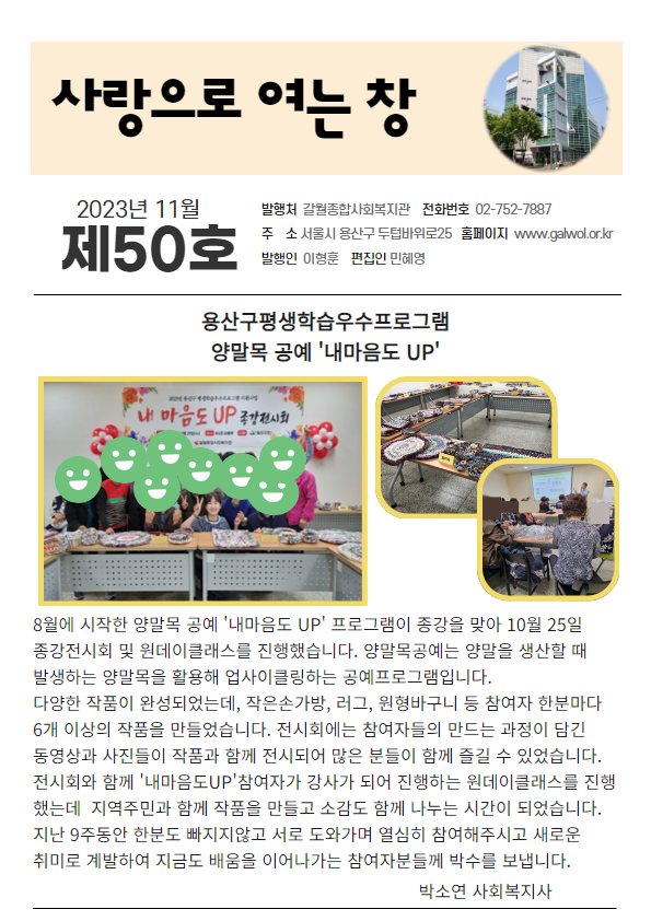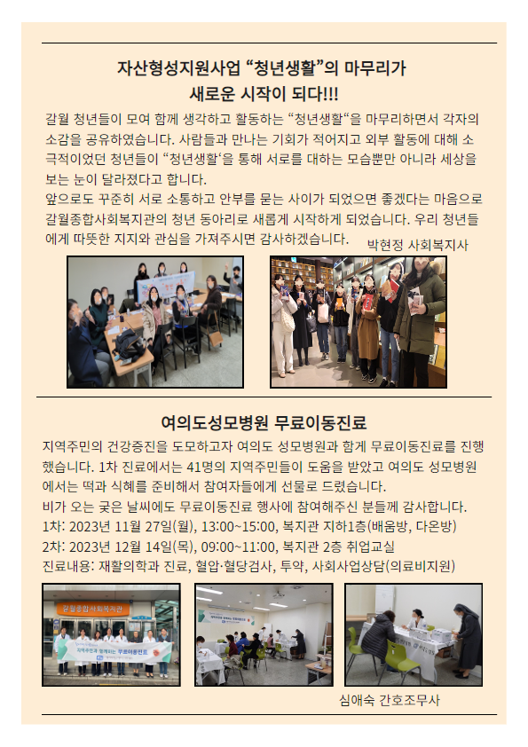 지역주민을 모시는 공동체로써 삶의질 향상에 최선을 다하겠습니다.
