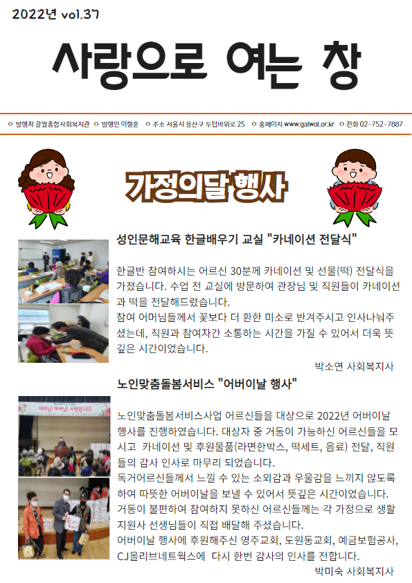 지역주민을 모시는 공동체로써 삶의질 향상에 최선을 다하겠습니다.